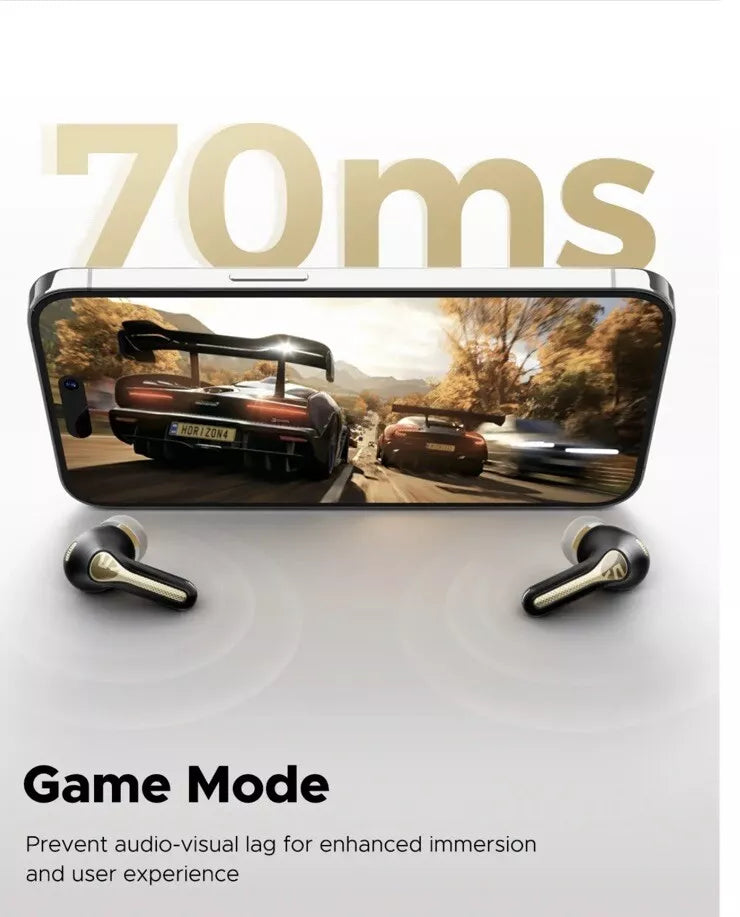 8. Game mode: The headset can enter the game mode by hitting the left ear three times. In this mode, the headset delay can be as low as 70ms, which is suitable for the listening position identification of mobile games such as Peace Elite.