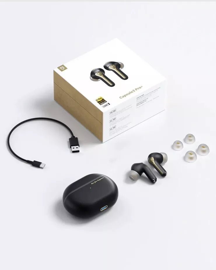Experience high-quality sound with the SoundPEATS Capsule3 Pro+ xMEMS Speaker TWS Earbuds. These earbuds feature Bluetooth 5.3 technology, making them perfect for wireless connectivity. With active noise cancellation and water-resistant features, these earbuds are ideal for use during workouts or outdoor activities. The built-in microphone and touch control make them easy to use, while the rechargeable battery ensures long-lasting use. These earbuds come with a 1-year manufacturer warranty and are available in black color.
