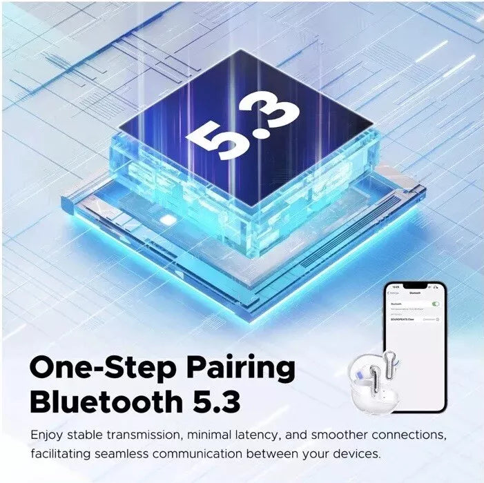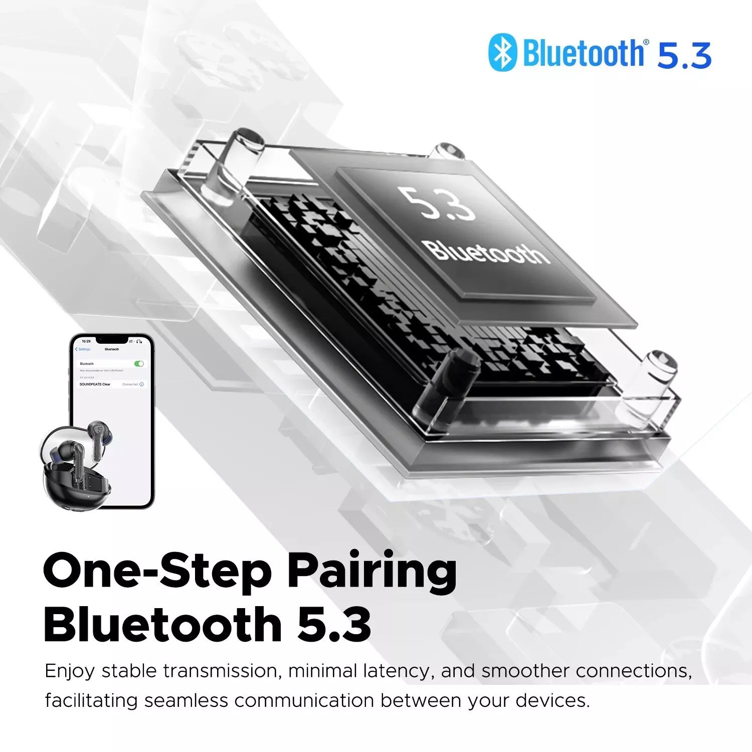 SoundPEATS Clear Transparent Design TWS Earbuds BT5.3 Mini Size 3mic ENC headphones Ture wireless.